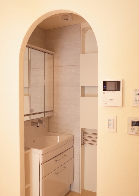 2つのアーチ。右側は洗面脱衣室へ続く入り口です。