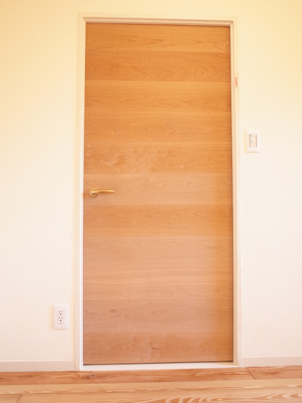 お施主様のご要望で、チェリー材を横張りにしてつくった木製建具。